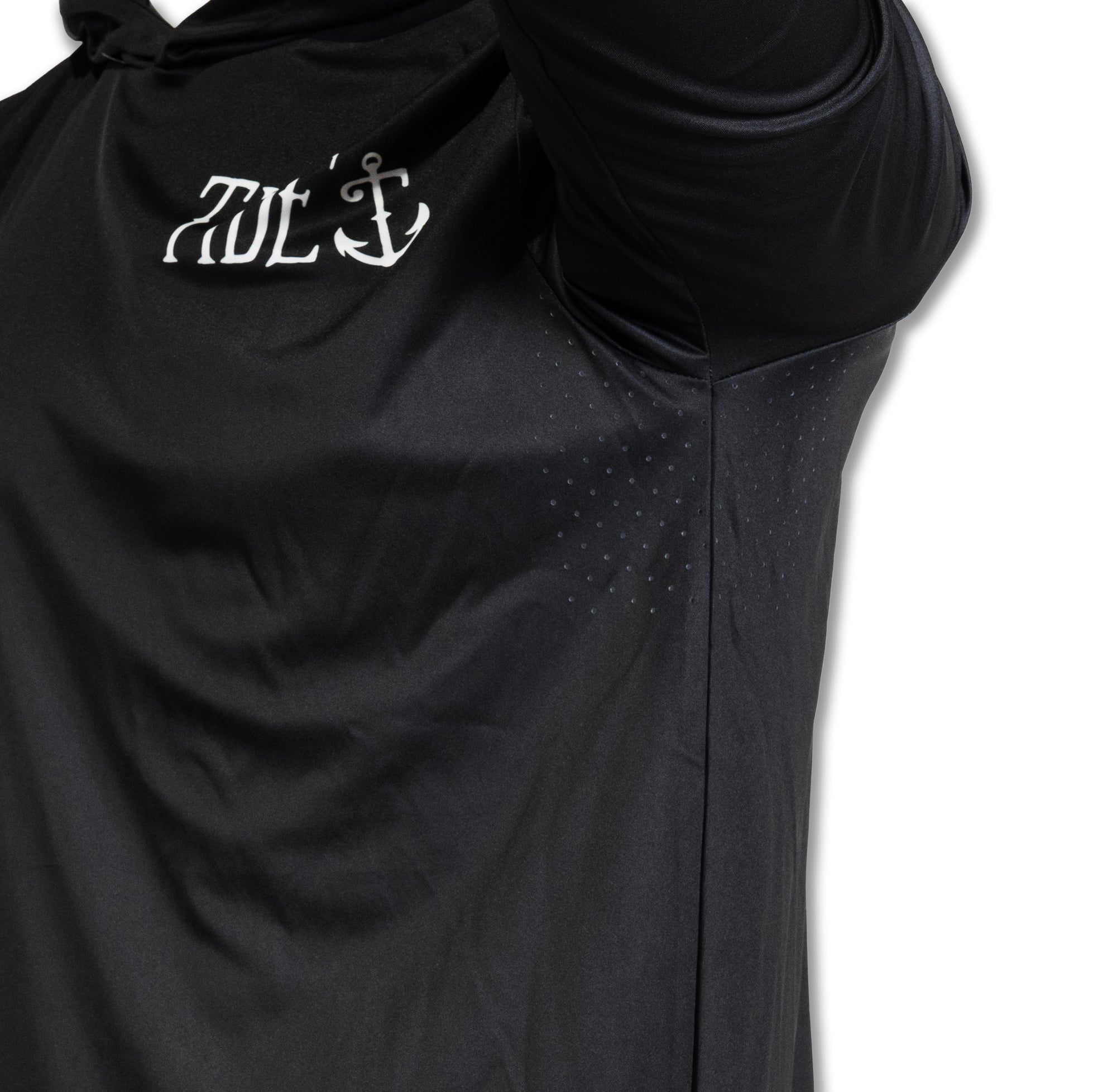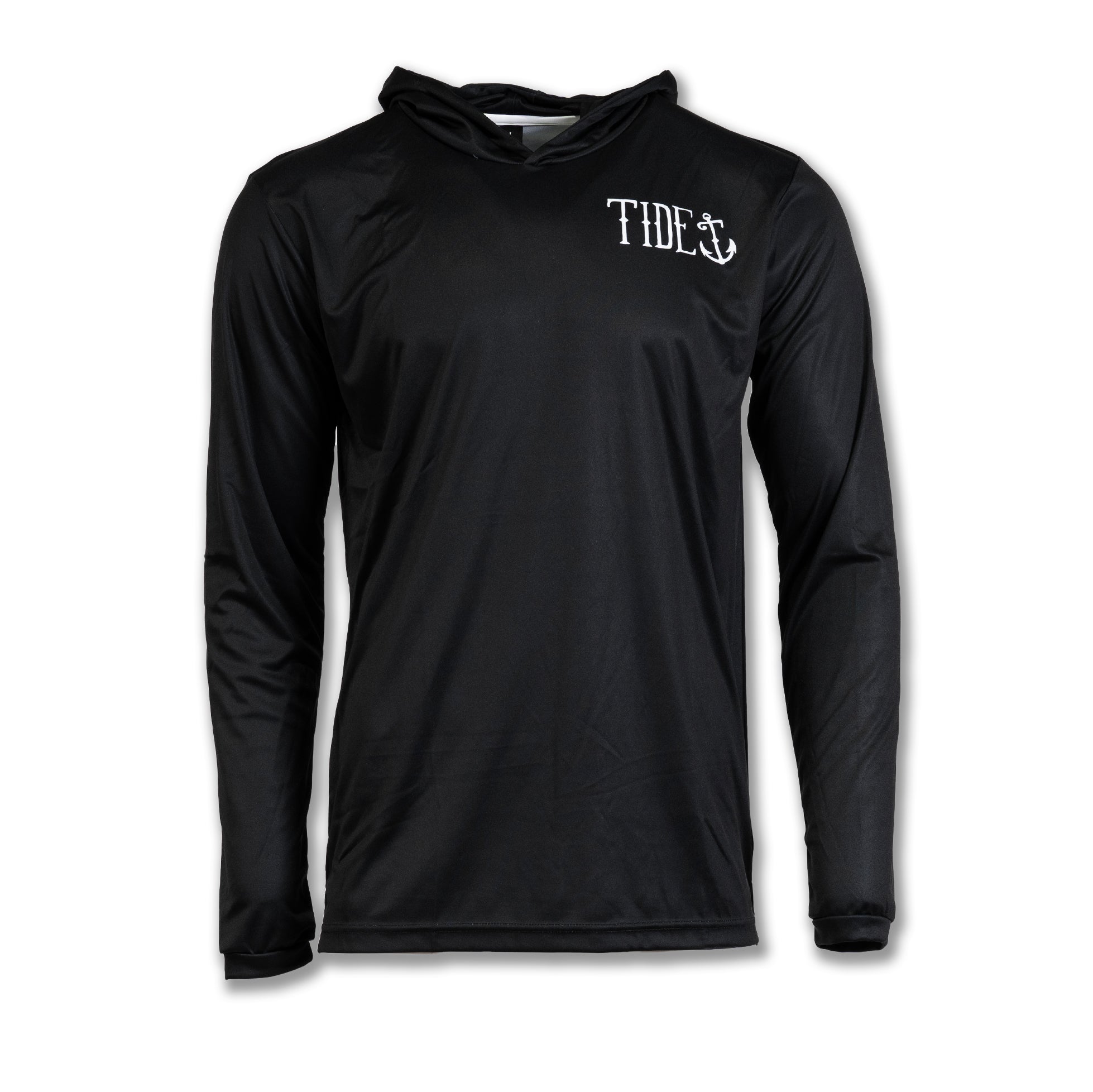 Stay cool and protected in the Tide Apparel Hooded Fishing Shirt. Designed with lightweight, breathable fabric and UPF50+ sun protection, it’s made from 100% recycled plastic materials. Perfect for fishing, boating, or all-day outdoor wear. To keep you cooler on the water, we have added laser cut holes under the armpits.